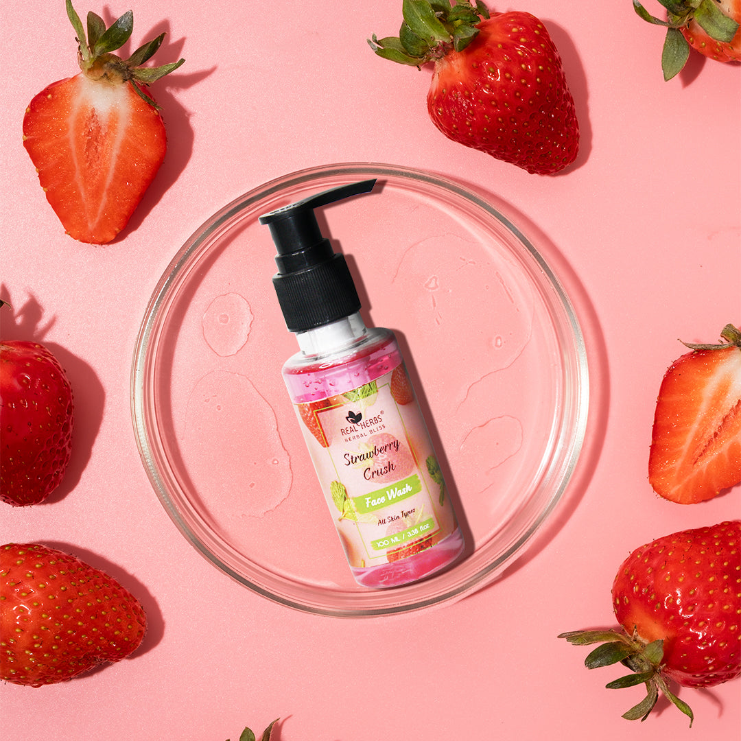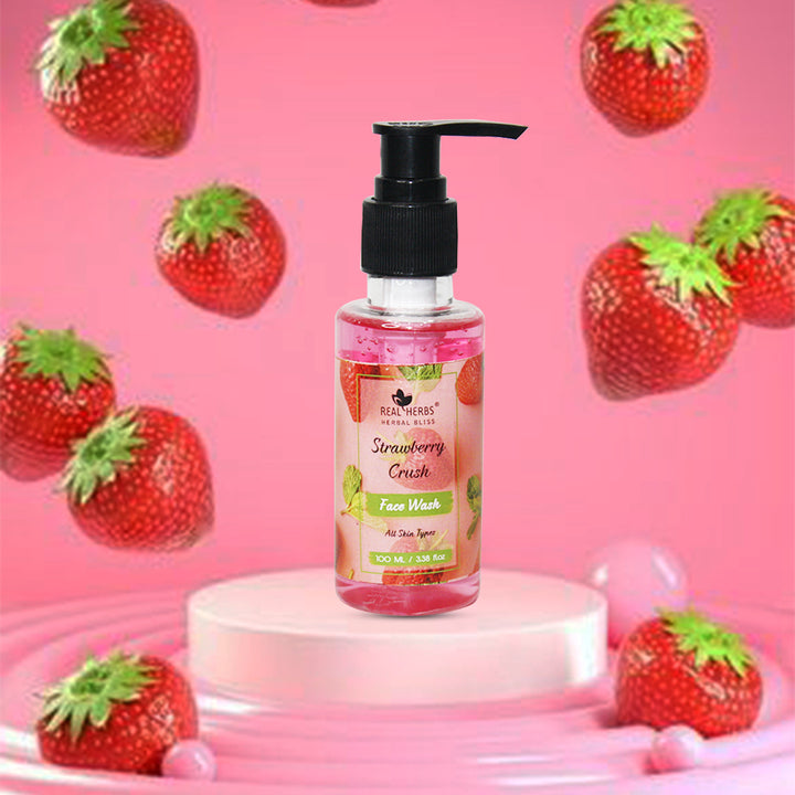 Real Herbs Strawberry crush face wash packed with plenty of natural nutrient rich strawberry extract which tends a gorgeous scent and gently cleanses way the daily dirt and impurities.